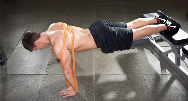 Bài tập Push Up với dây kháng lực được đánh giá cao về tốc độ tăng mô cơ ngực hiệu quả nhất. Bài tập còn tác động vào cơ vai trước và tay sau. Cách tập như sau: