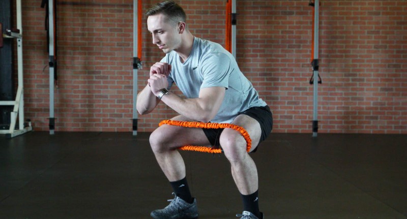 Bài tập Banded Squats With Loops giúp đầu gối của bạn không bị cong vào trong