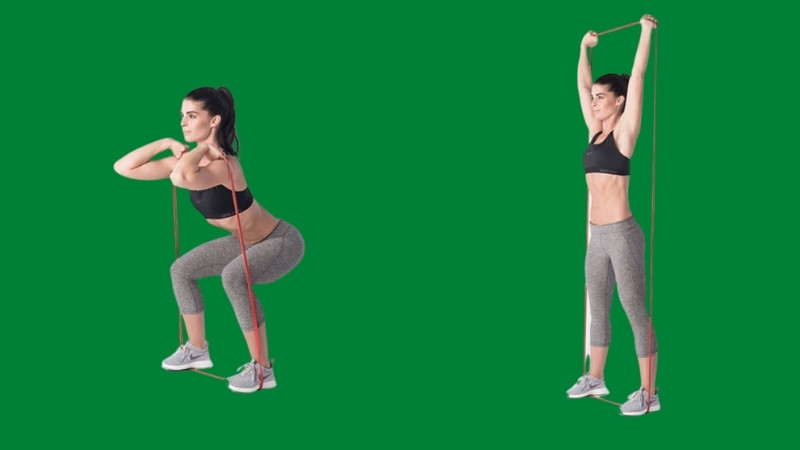 Bài tập Resistance Band Squats With Overhead Arm Extensions