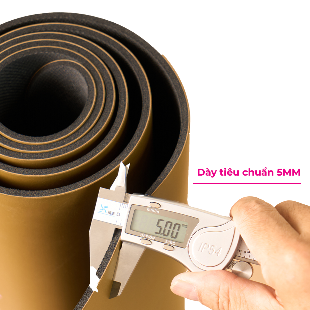- Lõi Polyester chống ẩm & nấm mốc giúp thảm luôn khô thoáng, đàn hồi bền – giữ form ổn định dù tập mỗi ngày.