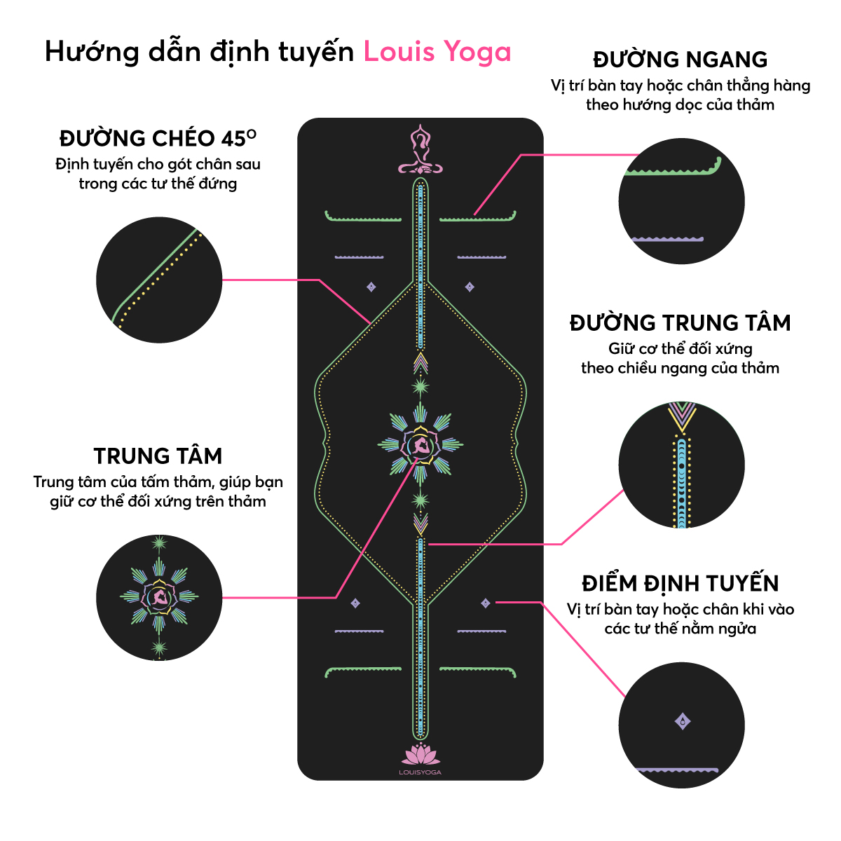 Họa tiết trung tâm là hình ảnh người tập Yoga, được bao quanh bởi những cánh hoa thanh thoát, đại diện cho sự mềm mại nhưng kiên định. Vòng ngoài cùng là những ánh hào quang rực rỡ, tượng trưng cho năng lượng mạnh mẽ tỏa ra từ bên trong bạn. Với Louis Yoga QUEEN, mỗi buổi tập không chỉ là rèn luyện thể chất, mà còn là hành trình khám phá vẻ đẹp nội tại, để bạn luôn rực rỡ như một nữ hoàng.