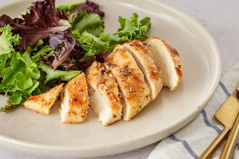 Ức gà giúp bạn cảm thấy no lâu hơn, giảm cảm giác thèm ăn và hạn chế ăn vặt, từ đó hỗ trợ kiểm soát lượng calo hấp thụ trong ngày. Thêm vào đó, ức gà có thể dễ dàng chế biến thành nhiều món ăn ngon như: Nướng, luộc, áp chảo hay xào, tất cả sẽ được giữ nguyên dinh dưỡng mà không làm tăng lượng calo dư thừa. Vì vậy, ức gà là lựa chọn tuyệt vời để bạn đưa vào thực đơn giảm cân.