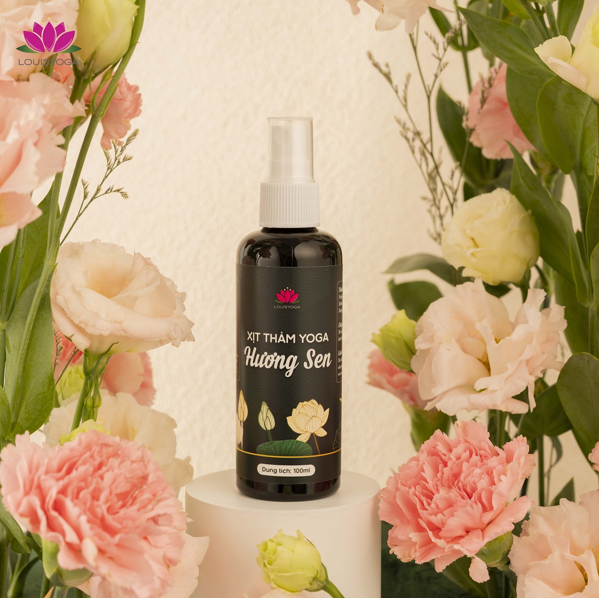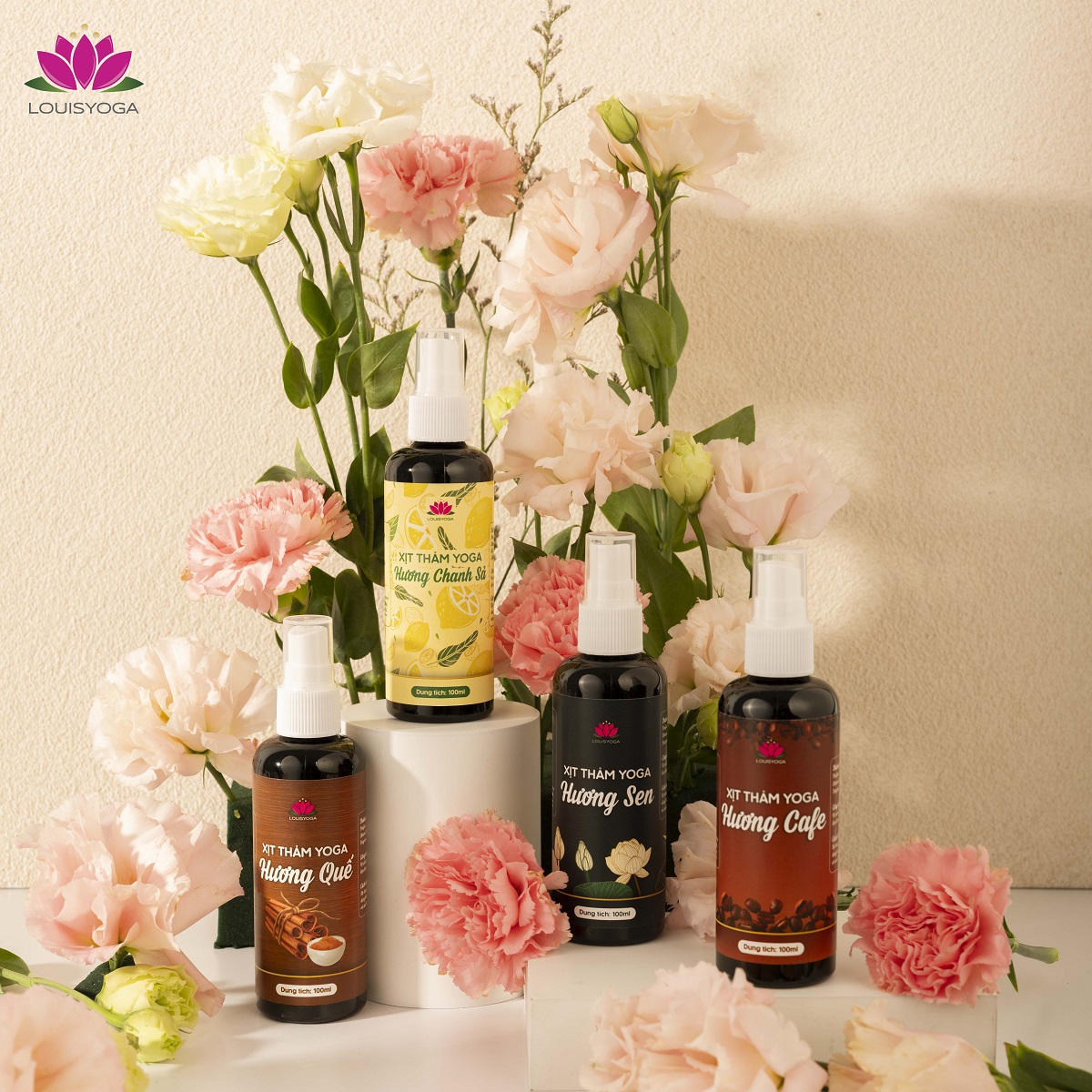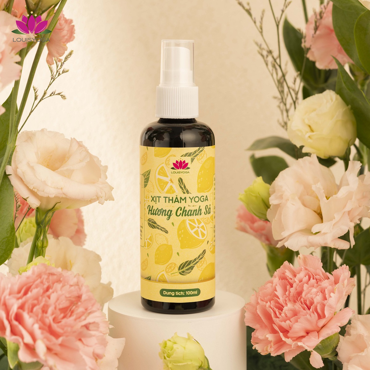 - Nước vệ sinh thảm Yoga đến từ nhà thương hiệu Louis Yoga được sử dụng chuyên dụng dành cho việc xịt và vệ sinh thảm sau mỗi buổi tập luyện.