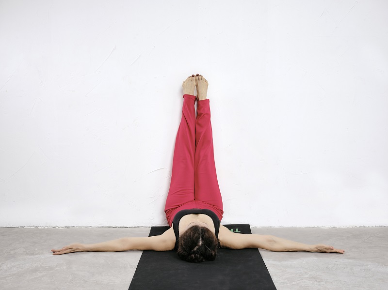 Tư thế “Dựng chân” được các chuyên gia khẳng định giảm mệt mỏi và stress hiệu quả. Nếu bạn tập động tác này thường xuyên sẽ làm giảm đi quá trình lão hoá, thanh lọc máu huyết, lưu thông và bơm máu trở về tim. Cách tập như sau: